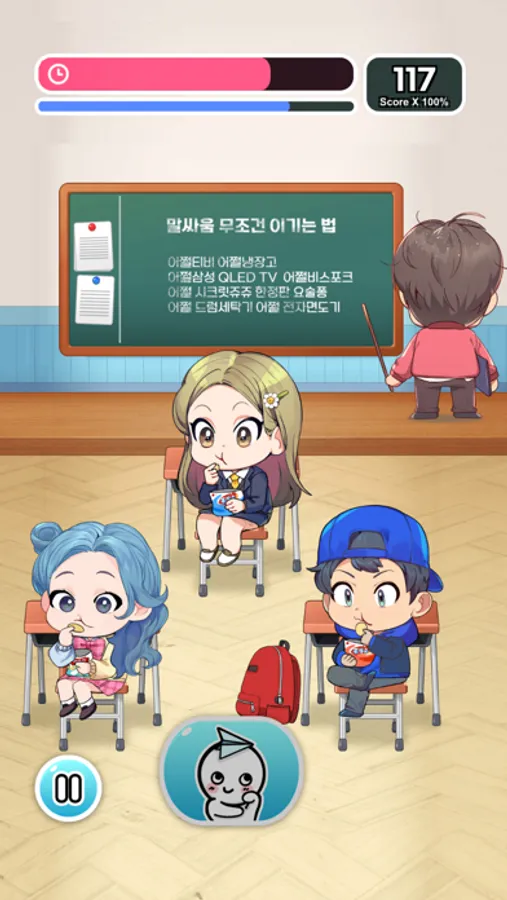 Tap the button to eat snacks, play on your phone, dance, and more.