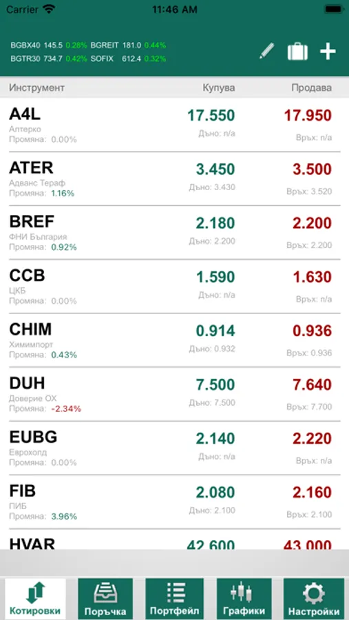 - Моментален достъп до пода на БФБ и котировки в реално време
