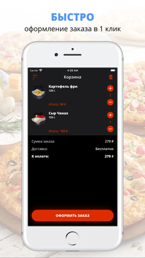 Скачивайте наше приложение, оформляйте заказ и наслаждайтесь любимой едой, где бы Вы ни были! Приятного аппетита!