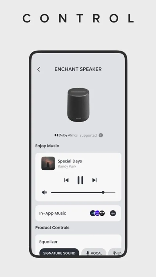 Connect to Wi-Fi, customize EQ and control your compatible device with a single convenient app. The Harman Kardon One app helps you to easily set up the devices, personalize settings, and use the integrated music services to enjoy your favorite songs.