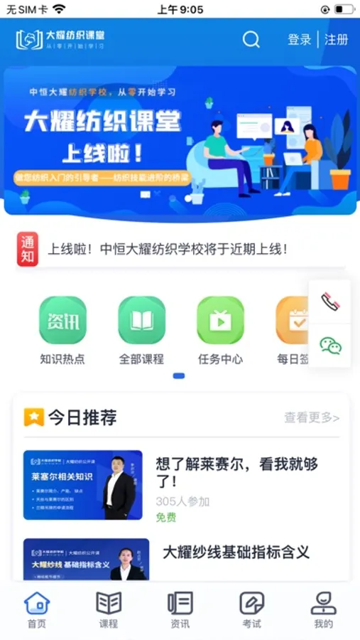 随着学校体系的不断完善,我们于2022年重点推出大耀纺织学校APP,实现了纺织课程学习的全面线上化,同时配备了与课程相符的练习试题和学习交流群,帮助学员能更全面、更系统的学习纺织知识。