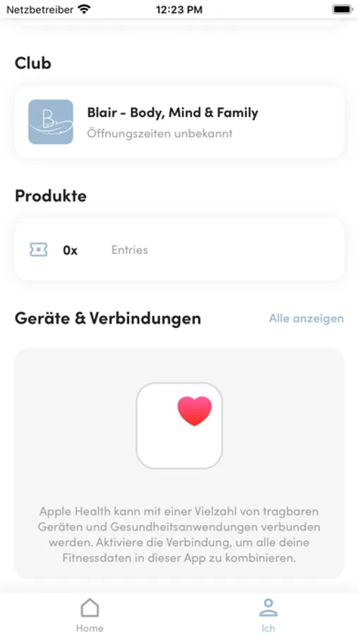 Sie können diese App mit der Apple Health App synchronisieren. Wenn Sie diese Übertragung aktivieren, wird jedes Training aus der Health App automatisch zu Ihrem Aktivitätskalender hinzugefügt.