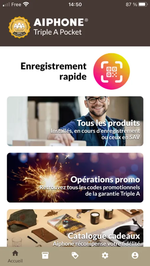 Gérant de votre société, consultez et enrichissez votre programme de fidélisation pour suivre vos commandes de cadeaux. Créez vos certificats de garantie, imprimez vos étiquettes pour le porte-nom de la platine de rue et accédez aux notices du kit vidéo Aiphone.