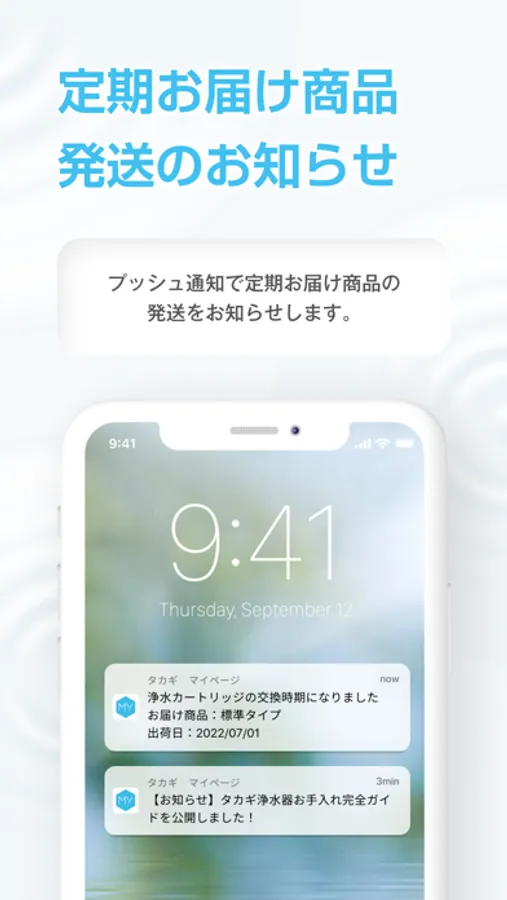 定期お届け商品をご契約中のお客様に、アプリプッシュ通知で商品出荷情報をお知らせします。プッシュ通知設定をONに設定してください。