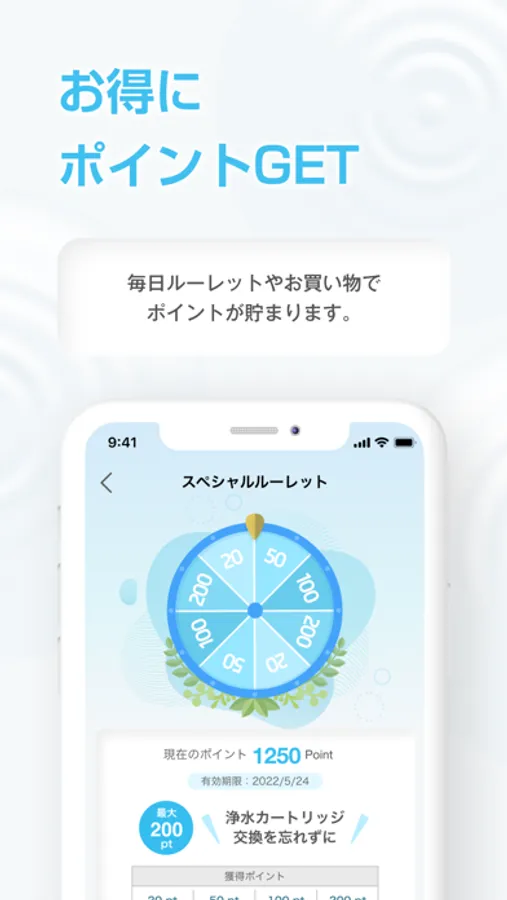 定期お届け商品のプッシュ通知ごとに回せるスペシャルルーレットやネットストアでのお買い物、毎日回せるルーレットでポイントが貯まります。