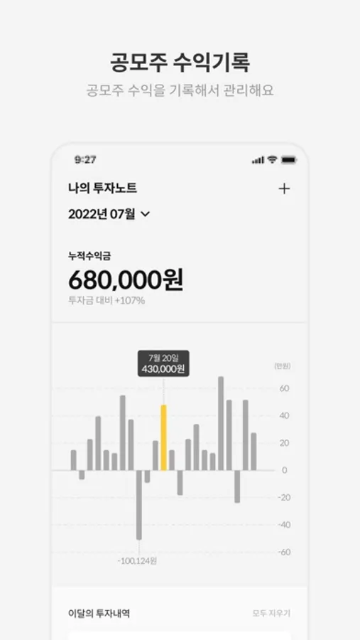 내가 언제 어떤 종목에 투자하여 얼마를 벌었는지 기록하고 확인하실 수 있어요.