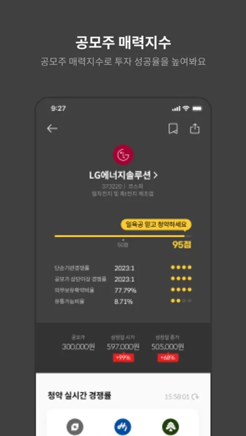 한눈에 파악 가능한 매력지수와 전문가의 의견을 통해 공모주 투자의 확률을 높이세요.