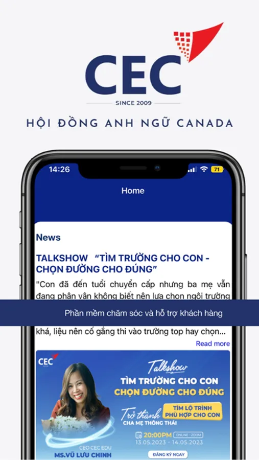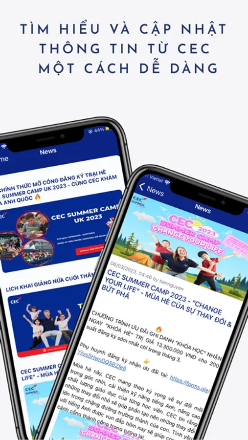 Chúng tôi mong rằng việc sử dụng nền tảng CEC EDU sẽ giúp Phụ huynh/ Học viên sẽ có những trải nghiệm thú vị, tiện ích, tiếp cận thông tin một cách nhanh nhất, chính xác nhất.