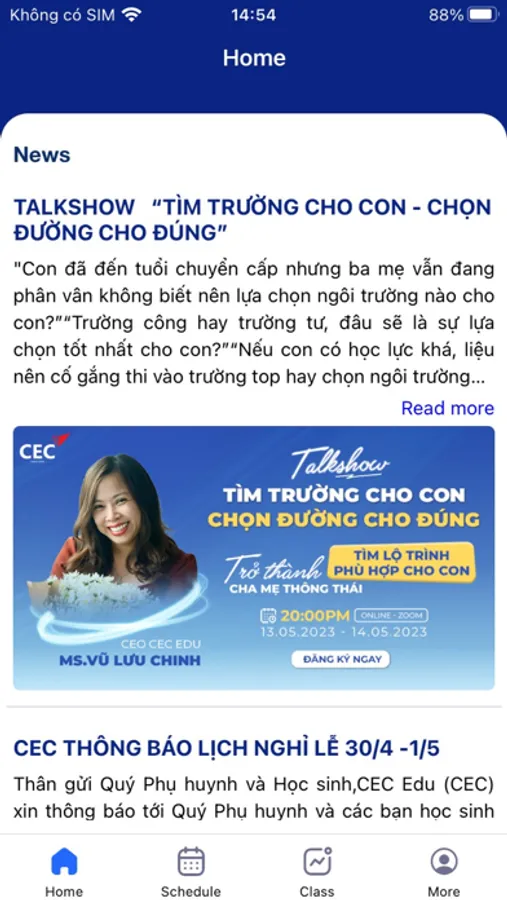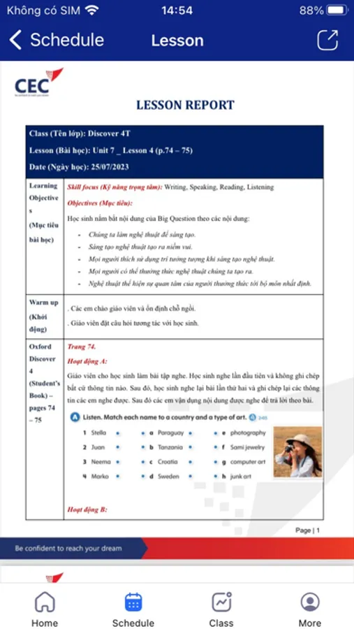 Tại đây, phụ huynh được cập nhật liên tục hoạt động của con tại CEC, bao gồm: