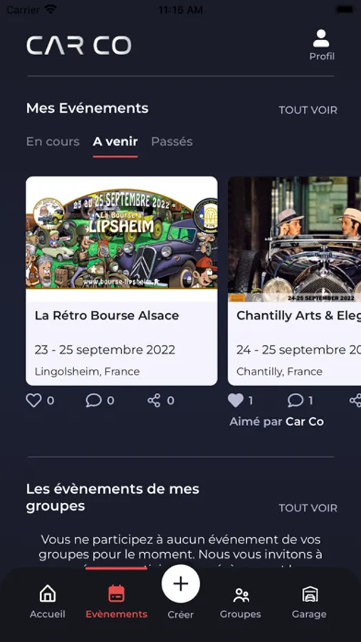 Participez à des groupes publics pour profiter de l’expérience et l’expertise du réseau des autres Car Coers passionnés.