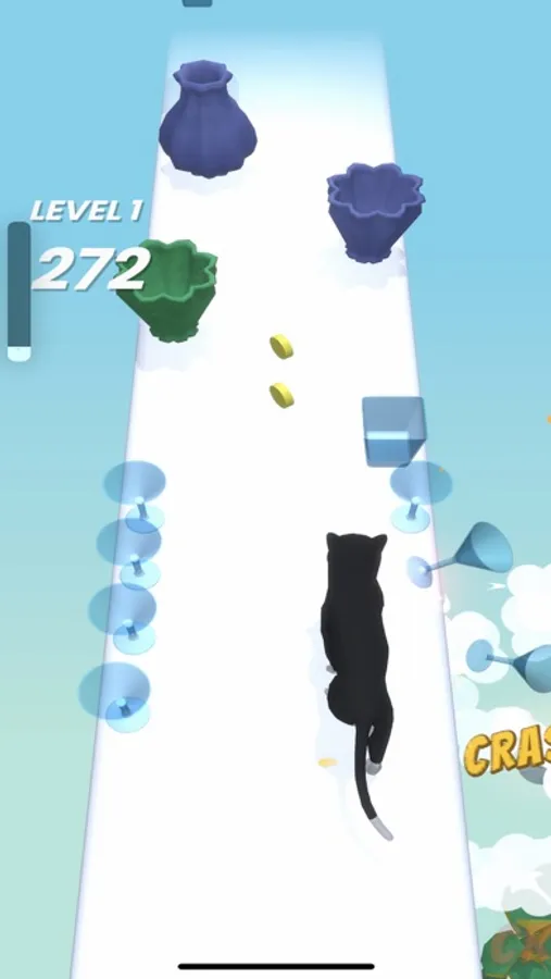 Avoid the BROOMS and CUCUMBERS that will scare your cat away and reach the end of the level safely.