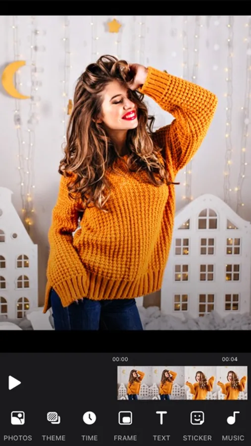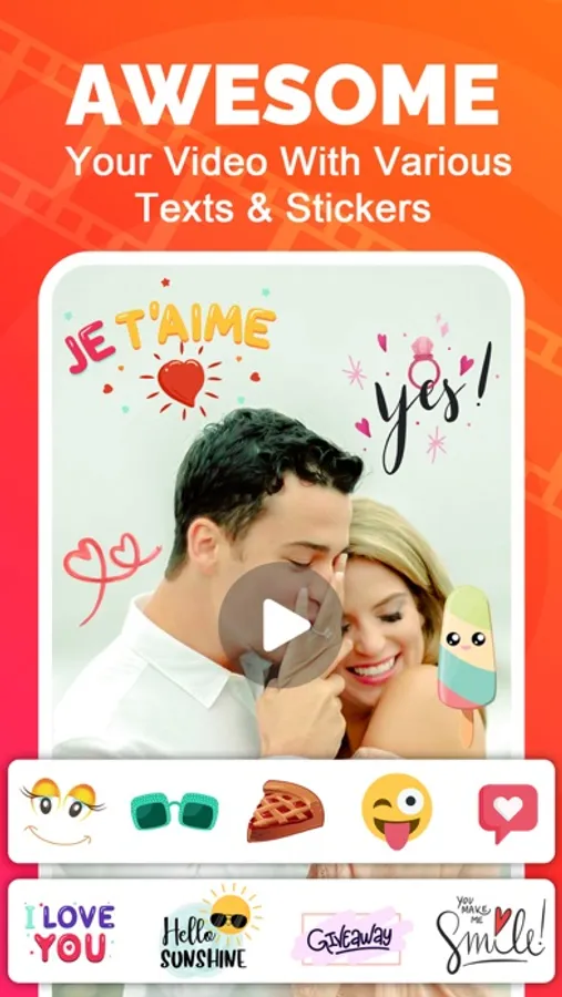 It's can easily create videos with your own photos, add your favorite music track, write text or name, apply various frames and add stickers.