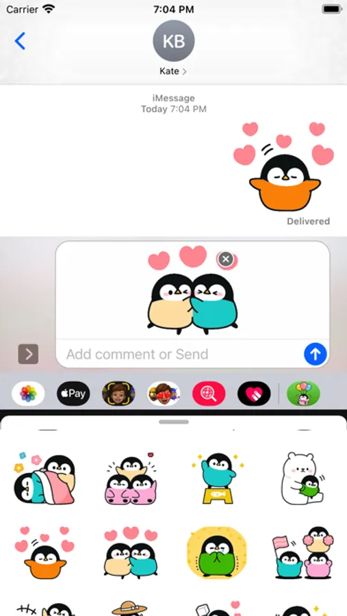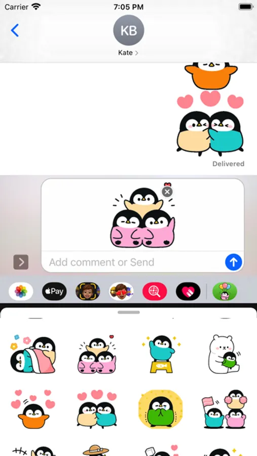Fun and Cute with "Cute Penguin 5 stickers" pack. It is always ready to add more emotion to your text.