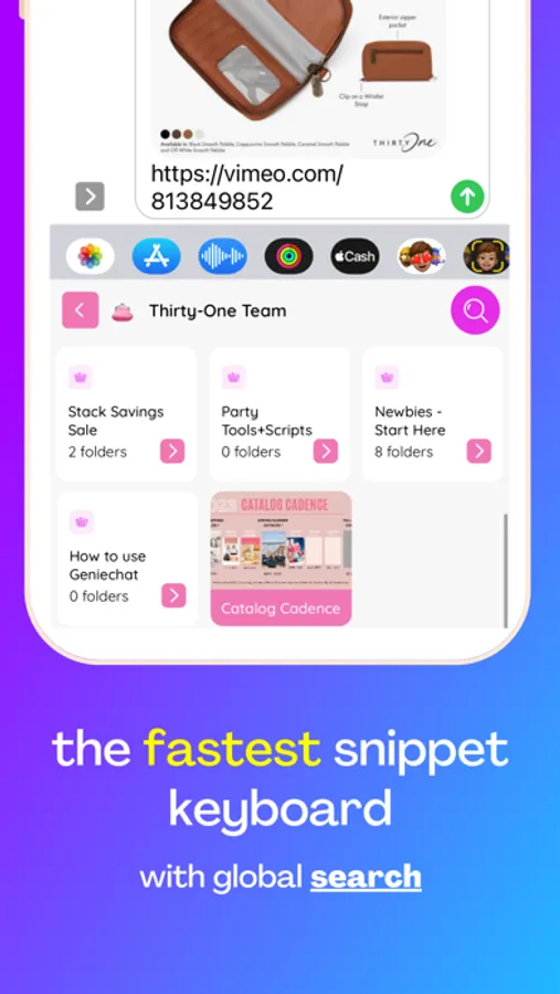 Getting the conversation going and knowing what to say to not be icky and salesy is so stressful. Well, now you never have worry about what to say with the geniechat custom keyboard! Instantly access and use professionally written scripts on ANY app that are sure to leave a great impression while building like, know, and trust.