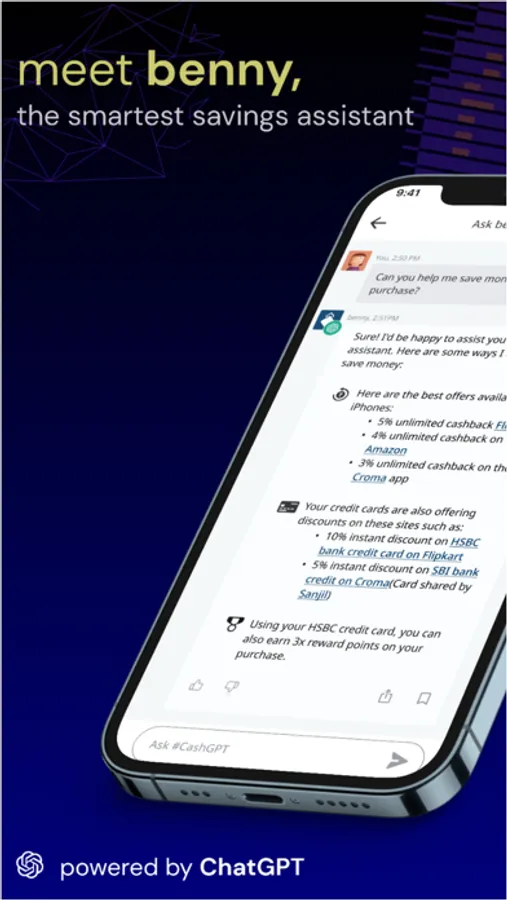 benny is powered by GPT-4 to provide you step by step guide as to how to save maximum on a category, brand or a product!