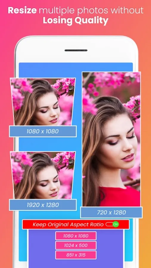 The JPG image convert app can resize image in maintaining original image quality and aspect ratio.