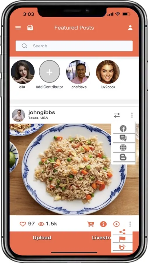 - Livestream with your followers and those you are following - teach them how to cook some of your favourite dishes and show-off your cooking skills