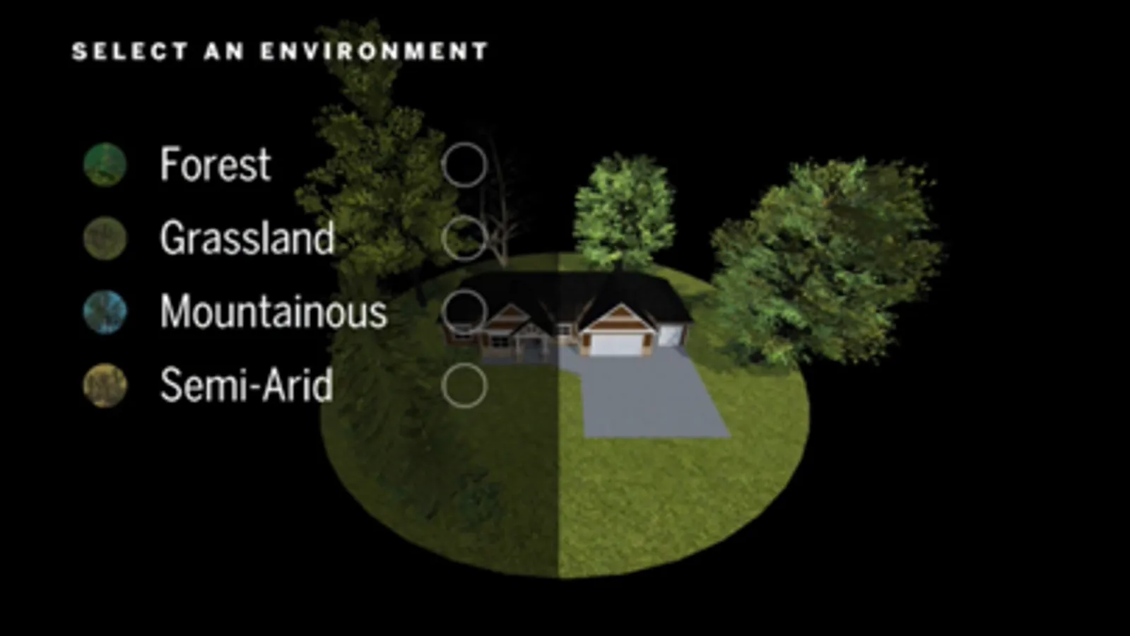 See how well your home or business is protected against wildfire and learn steps you can take to help reduce your risk. Select the environment, structure, roof, siding, and other details that most closely match your own, then watch as a simulated wildfire approaches. Will your structure survive?