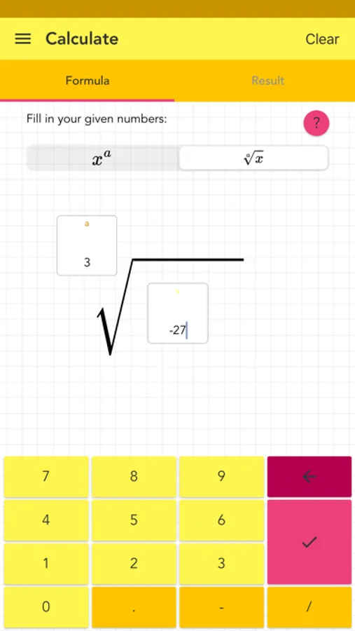 - mode for calculating the root of a number