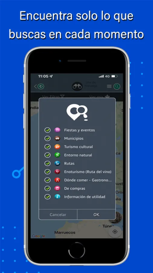 Descarga nuestra aplicación y comienza a disfrutar de las mejores recomendaciones del entorno de manera cómoda y simple en tu móvil, con la particularidad de ¡no necesitar conexión de Internet!.
