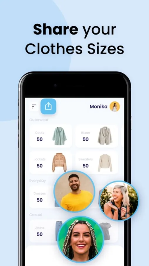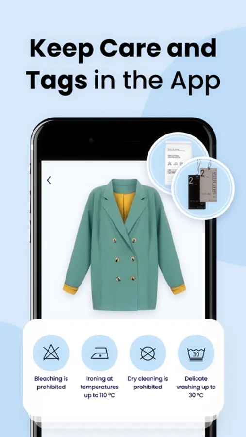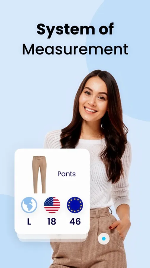 The Size It will quickly and easily calculate your body measurements (it's an one-time process takes only a few minutes) and instantly get your perfect size for every item you buy. Store your clothes tags and never forget your laundry symbols.