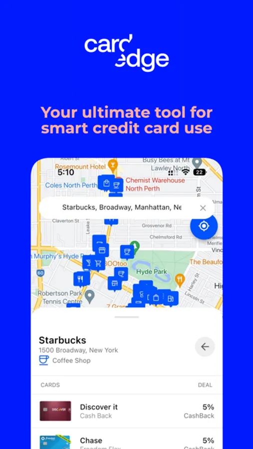 CardEdge is the ultimate tool for smart credit card use. Our app helps you compare credit card rewards programs and find the best card to use for every purchase. Say goodbye to missing out on rewards and hello to maximizing your benefits. With CardEdge, you'll have access to a comprehensive merchant directory, allowing you to easily see which card will earn you the most rewards at each location. With just a few taps, you'll be able to make informed decisions that lead to more rewards and savings. Download CardEdge today and never settle for less than the best when it comes to your credit card rewards.