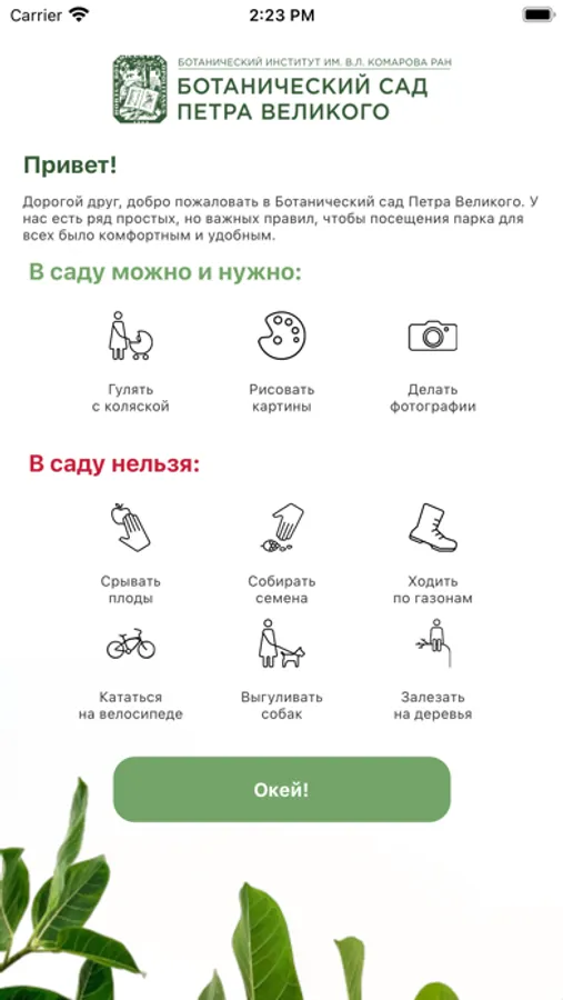 Мобильное приложение с интерактивной картой Ботанического сада Петра Великого.