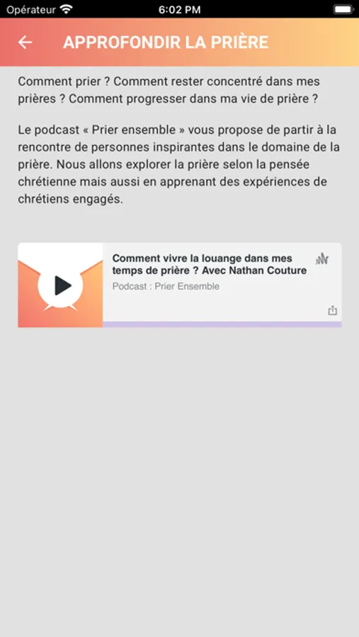 - Approfondir la prière : avec un podcast audio où on retrouve des interviews et des réflexions théologiques et pratiques