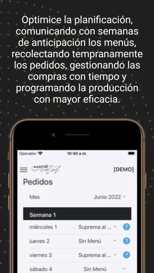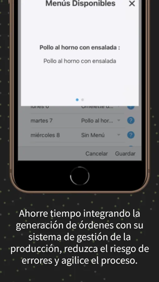 - Optimice la planificación comunicando con semanas de anticipación los menús diarios, recolectando tempranamente los pedidos, gestionando las compras con tiempo y programando la producción con mayor eficacia.
