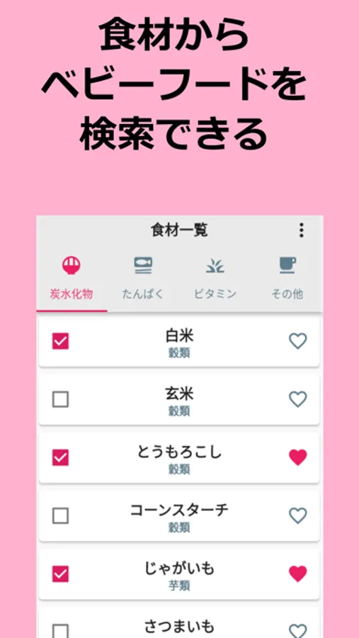 <食材からベビーフードを検索>