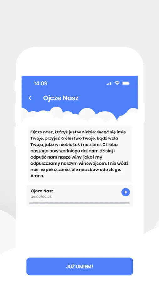 Aplikacja przeznaczona głównie dla najmłodszych dzieci przygotowujących się do Pierwszej Komunii Świętej. Aplikacja została zaprojektowana, aby pomóc w nauce pierwszych ważnych modlitw. Dodatkowo aplikacja posiada zbiór modlitw w formie czytanej - audio, dzięki temu nauka może być łatwiejsza dla słuchowców!