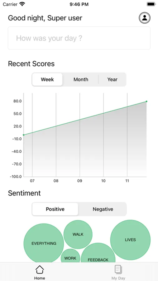 Unlock the power of self-reflection and understand your emotions with our app that can find the sentiment of every story for iOS. Whether you're looking to improve your mental health, set and achieve personal goals, or simply document your daily thoughts and experiences, our app makes it easy to capture and organize your memories. With a simple and elegant interface, you can easily record text and analyze sentiment, classify your entries by positive, negative and neutral emotions. Our app also includes a variety of prompts and guided journaling exercises to help you get the most out of your writing. Keep your journal private and secure. Download our Love Yourself Journal app today and start journaling your life journey with a new level of self-awareness.