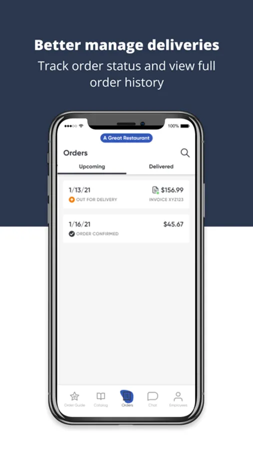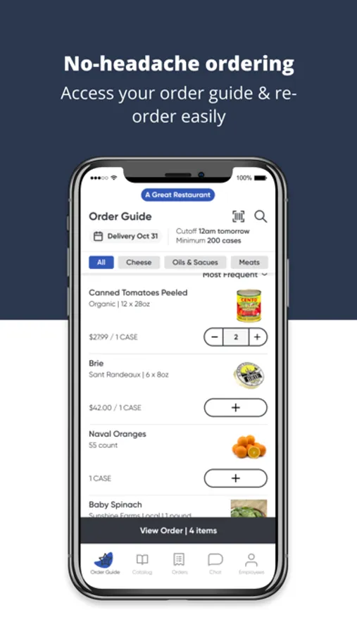 Our mobile app lets you search our complete product catalog, manage and update your ordering guide, and buy what you need at the moment you need it. It’s part of our commitment to giving you an ordering experience you’ll love.
