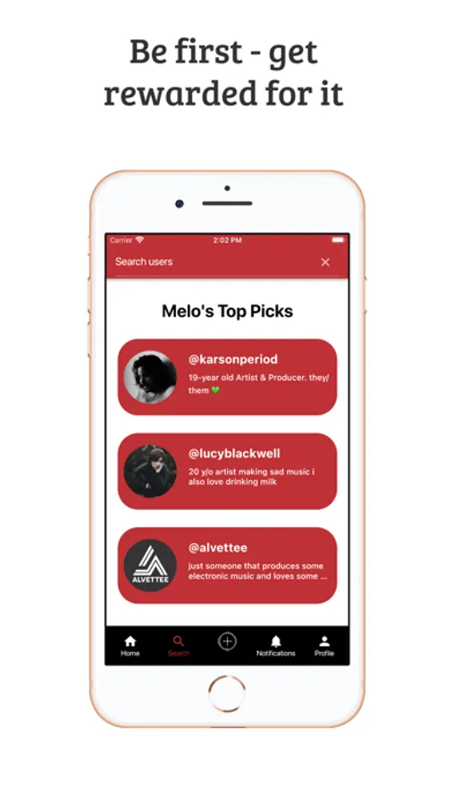 In Melo, you can immerse yourself in your favorite up-and-coming artist's journey. Not only do you discover new music, but you can engage with the artist in new ways. The more you engage with artists, the more others will follow you for your music taste.