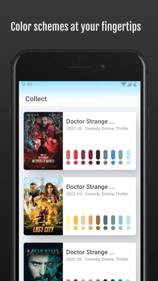 Movie posters will be designed with a very colorful style and artistic beauty. The color matching of movie posters is also an excellent design work with the strongest color style. We refine movie posters with AI technology and obtain their excellent color schemes for designers and enthusiasts to learn and use these excellent color schemes