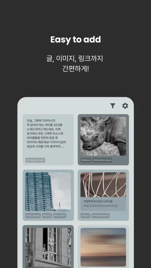 평소에 차곡차곡 아카이빙했던 영감들이 나중에 아이디어가 필요할 때 더 쉽게 찾을 수 있겠죠?