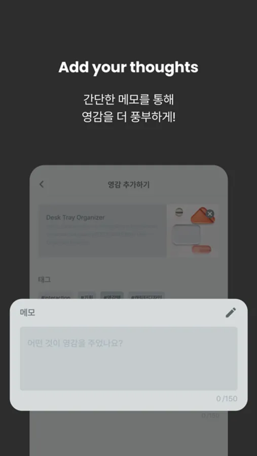 이게 왜 번뜩이는 아이디어의 영감이 되었죠? 영감을 등록할 때,