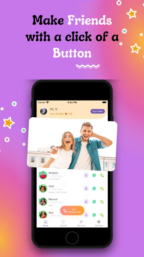 mychatClub is a secure online space that allows you to talk to random people worldwide through voice chat. On my chat Club, you can make voice calls to girls or boys from all around the world without revealing your identity (unless you want to).