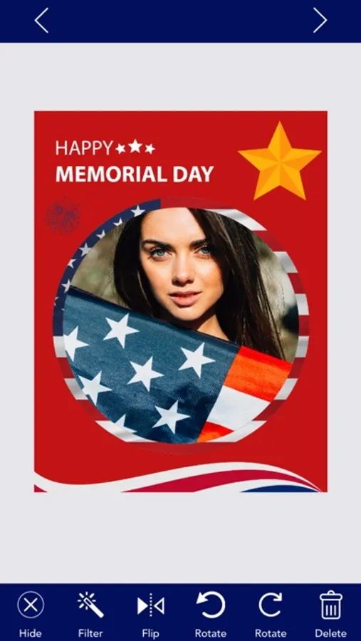 Memorial Day Photo Frames app is for create amazing Memorial Day Photo using photo frames and stickers. Memorial Day Photo Frames is one of the best Photo Editor app with photo frames, stickers, multiple effects, add text on photo and many more. This app is free and easy to use, Using this app you can share Memorial Day greeting cards to your friends or relatives with add photo in frame and this is the great way to celebrate Memorial Day.