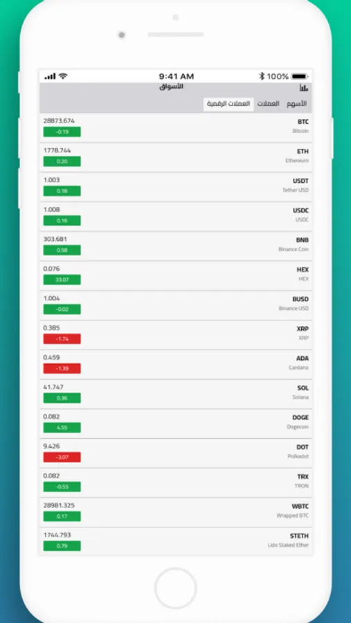 ويمكنك متابعة أسعار الأسهم والتغير في السعر من خلال شاشات سهلة الأستخدام.