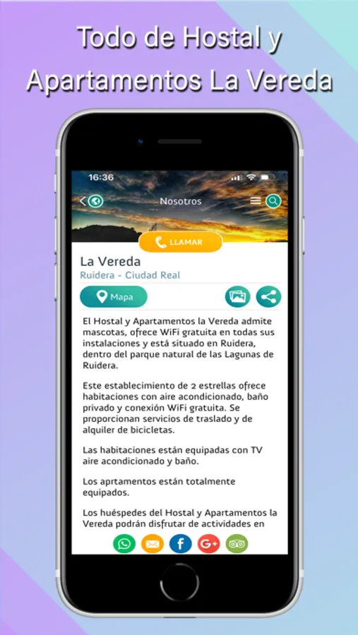 Cuenta además con un sistema que te permitirá marcar todas tus opciones favoritas para planificar mejor tus vacaciones. Con nuestra guía de Hostal La Vereda en Ruidera, podrás encontrar los mejores sitios de la zona. A través de su buscador de recursos puedes escribir lo que buscas y la app de informará en cada caso donde puedes encontrarlo.