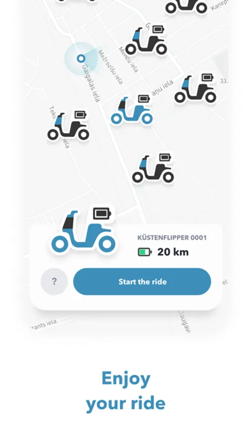 Mittels App findest du den nächstgelegenen E-Roller und reservierst ihn für Dich. Dann nur noch den Roller mit der App entriegeln und los düsen. Eine Pause einlegen kannst du natürlich auch: Anhalten, Pause-Button drücken und einen Zwischenstopp bei Kaffee und Kuchen genießen. Der Miet-Tarif wird zwischenzeitlich auf Park-Tarif umgestellt. Willst du die Miete beenden, stellst du den Roller an einem geeigneten Ort ab und legst die Helme zurück in die Box. Dann nur noch in der App auf Miete beenden klicken – dadurch schließt sich die Box und der Küstenflipper-Scooter ist abgegeben.