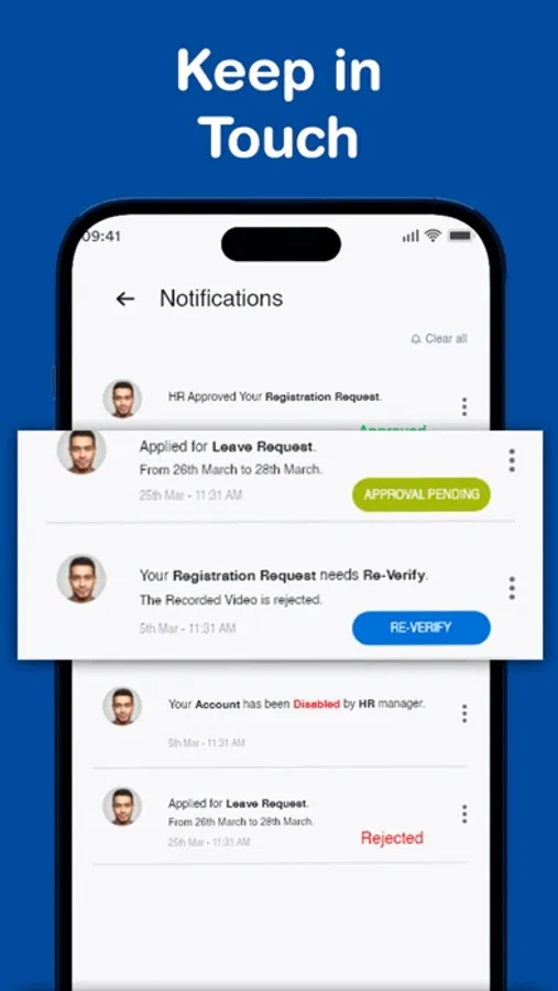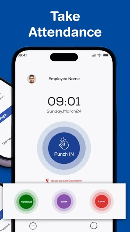 The organization can define the locations where its staff exists and the application will detect their GPS locations to notify them if they are inside/outside the organization's location, then if they are outside the location it will not allow them to log their punches.