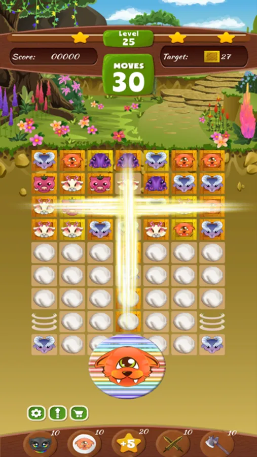 Switch Monster Friends to create a match in a row or a column to solve the puzzle. Utilize an array of boosters with magic powers to navigate through difficult set of puzzles.