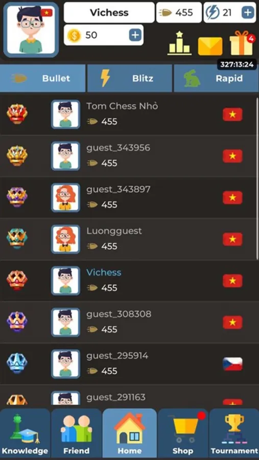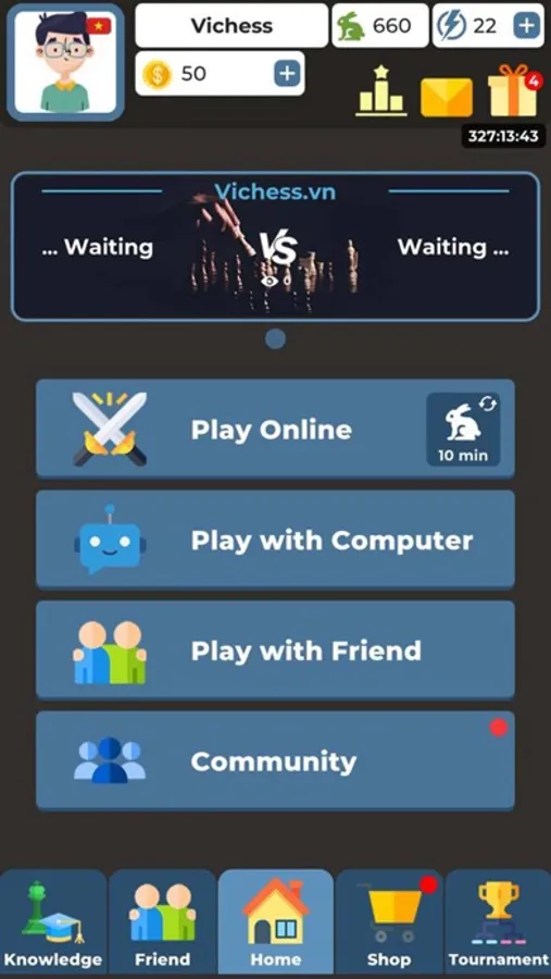 Play chess Vichess compete with friends, participate in tournaments and receive gifts commensurate with your level.