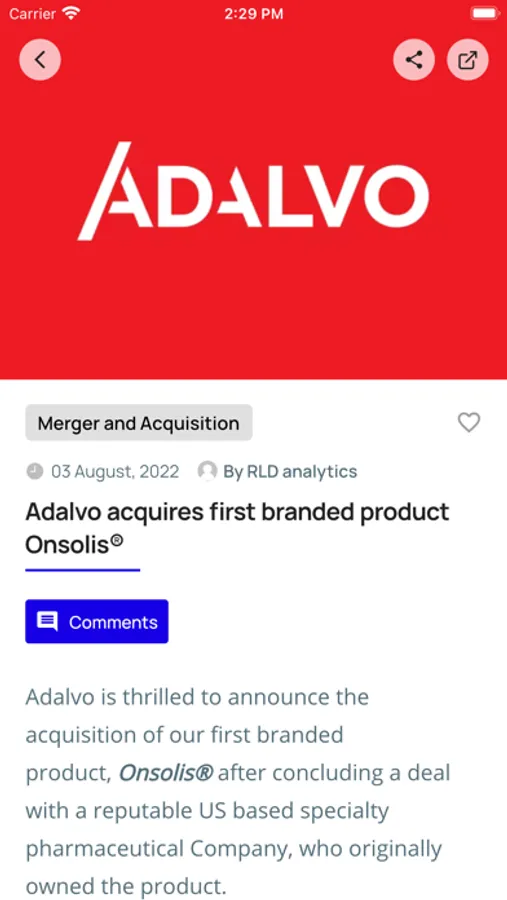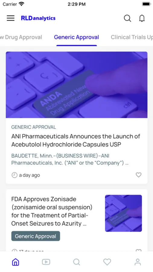 RLD analytics app is completely free of cost, It provides the latest news in the field of pharma & biotech industries. Users get instant notification for all news like - New Drug Approvals, Generic Approvals, 505( b)(2) approvals, Biologic & Biosimilars approval worldwide. Using RLD analytics, users can Bookmark & comment on specific news.