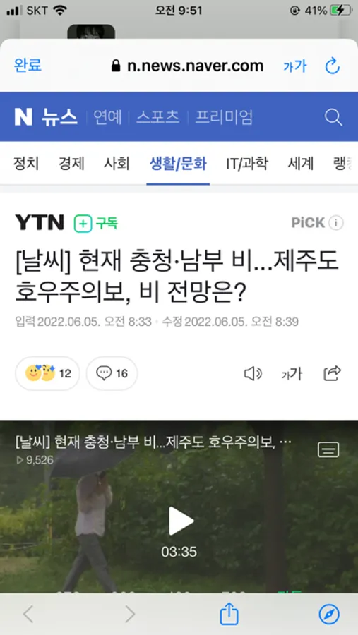 언론사에서 업데이트 되는 날씨 뉴스들을 바로 볼 수 있습니다.