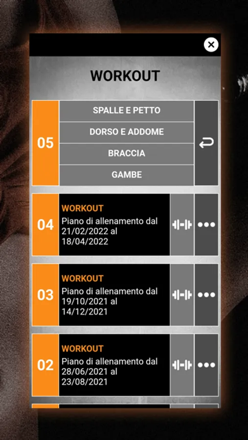 Poi consultare in qualsisi momento il tuo programma di allenamento in corso e quelli passati.