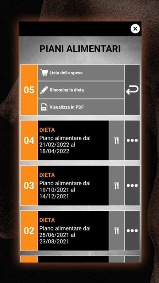 Poi consultare in qualsisi momento il tuo piano alimentare in corso e anche quelli passati.