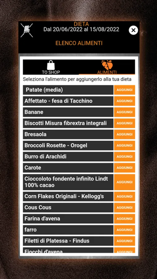 • Devi fare la spesa? Impossibile dimenticare qualcosa grazie comoda lista della spesa che elenca tutti i cibi presenti nella tua dieta e ti consente di aggiungerli nella lista "to shop" per acquistare sempre e solo il necessario.